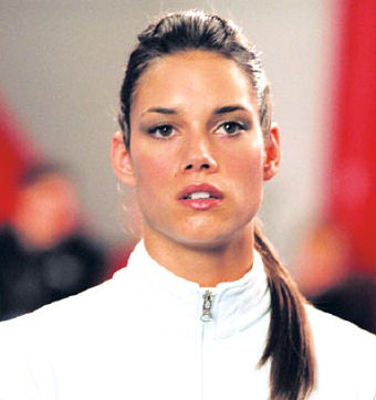Hilary Swank lookalike Missy Peregrym was 23 years old in 2004 when she played the 17 years old gymnastics rebellious goddess Haley Graham in “Stick It”.